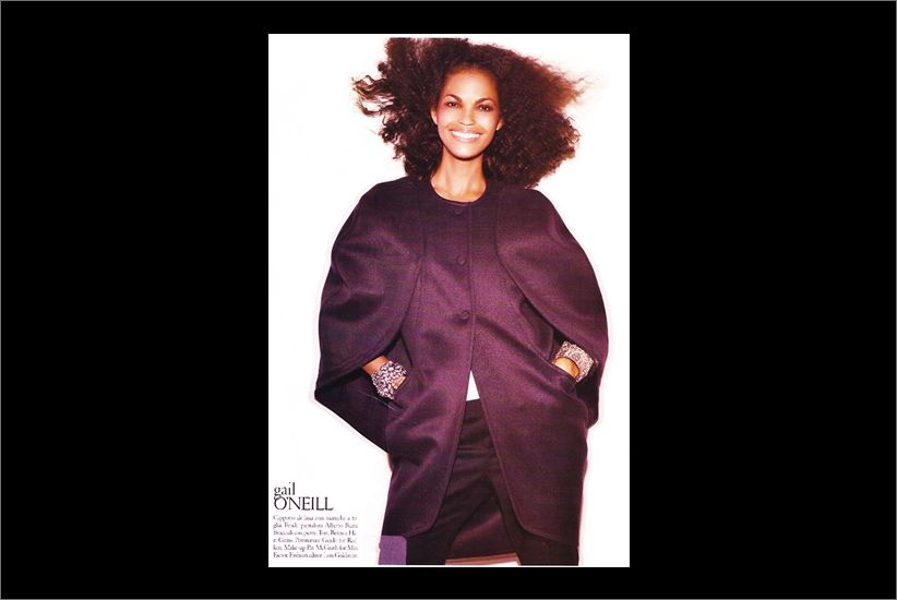 Gail O’Neil featured in “Black Issue” of Vogue Italy wearing Hari Jewels Diamond bracelet in July 2008 issue.